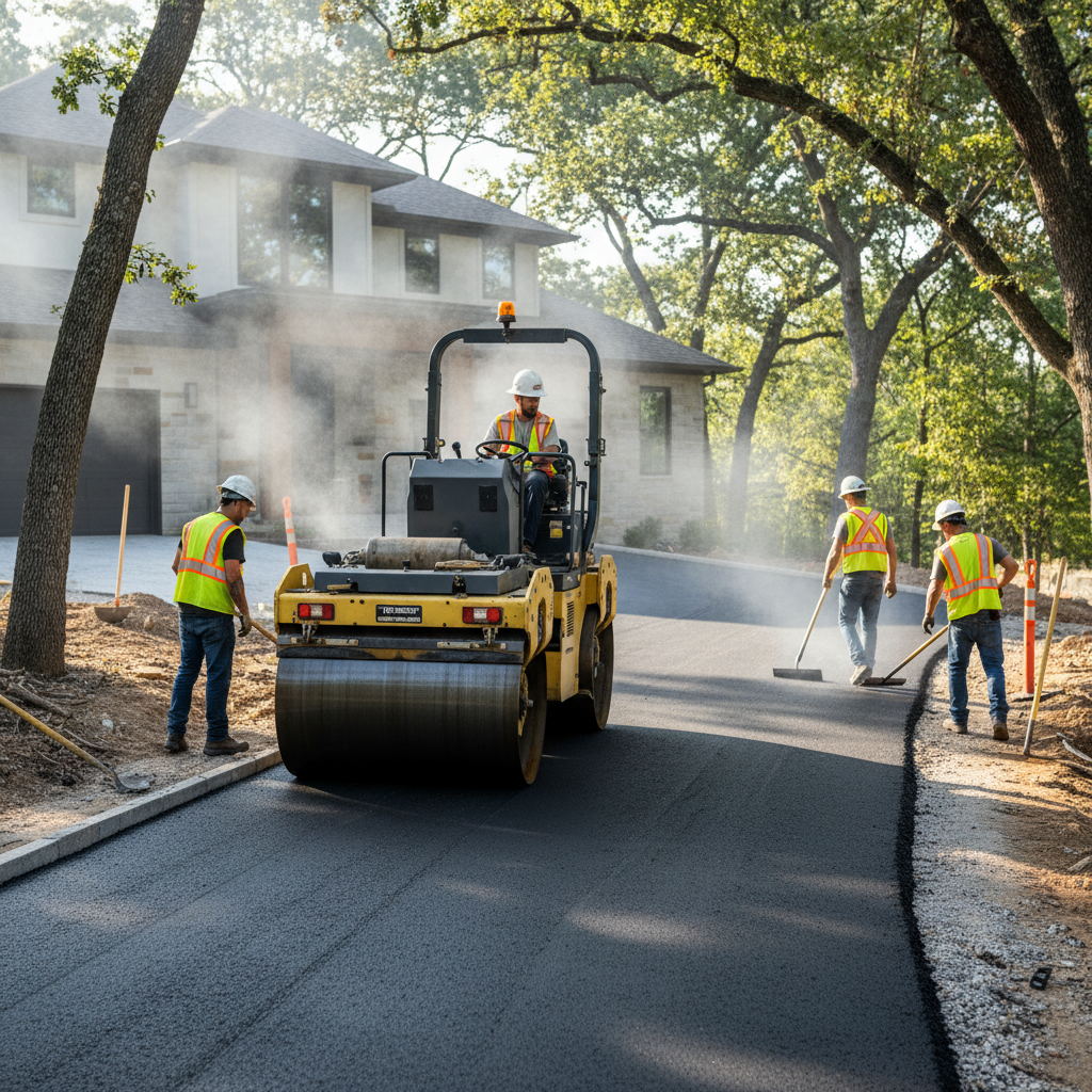 New asphalt driveway installation in Millbrook. Excavation, gravel base, hot-mix asphalt, proper grading and drainage.